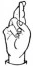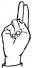 На ћирилици написано МИХАЈЛО ТРИКОШАНИН састоји се из 17 слова [?]. Исписано ћириличном једноручном азбуком за глувонеме: